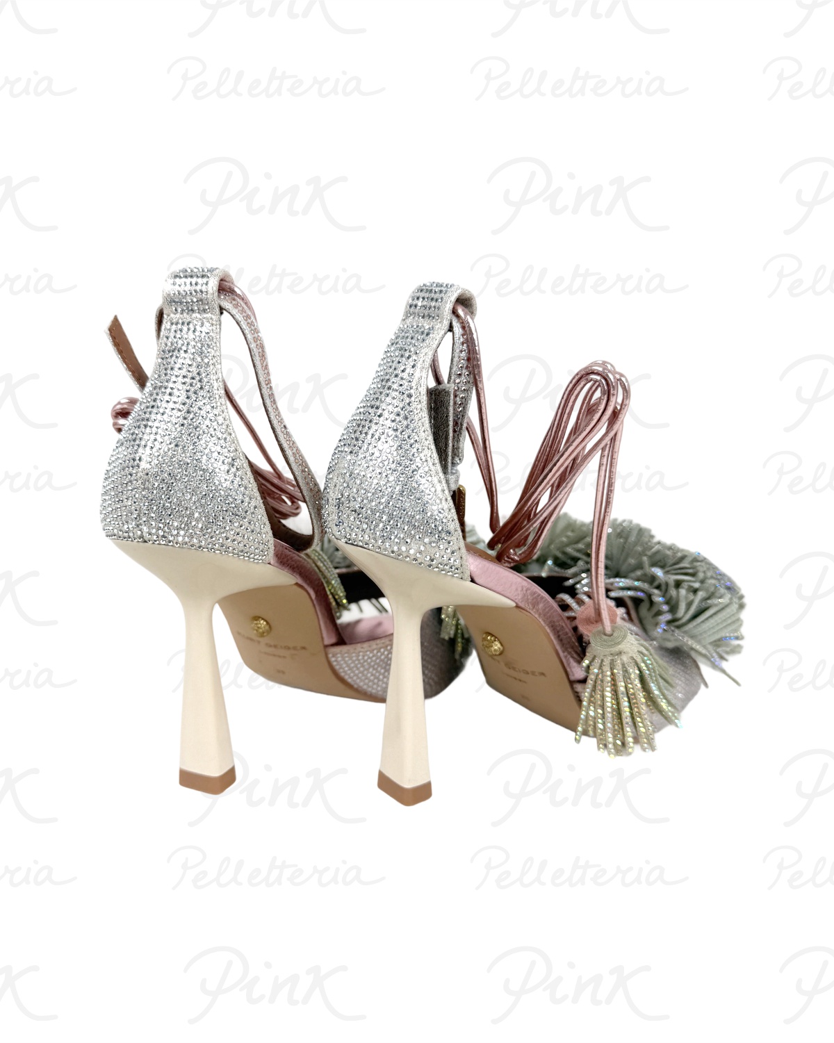 Il design aperto sulla punta valorizza il piede con grande delicatezza, mentre i maxi dettagli decorativi effetto pom pom gioiello rendono il sandalo originale, sofisticato e ideale per occasioni speciali, cerimonie, eventi serali o outfit eleganti da giorno. Il cinturino alla caviglia con lacci dona un tocco scenografico e femminile, assicurando allo stesso tempo una calzata stabile e confortevole.