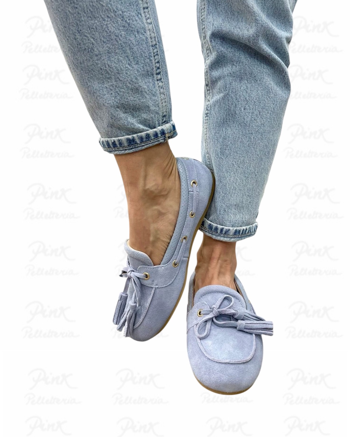 Realizzato in cow suede, presenta una tomaia morbida e piacevole al tatto che valorizza il design ispirato al classico mocassino da barca. Il dettaglio con lacci e nappine decorative dona movimento e un tocco ricercato alla scarpa, mentre la linea pulita lo rende facile da abbinare sia a look casual sia a outfit più curati.