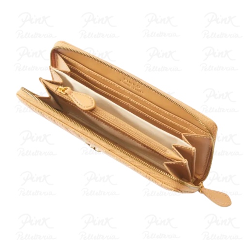PINKO Ryder Zip Around Sheep Nappa Chevron 100250-A0GK-C83Q Torrone/Antique Gold